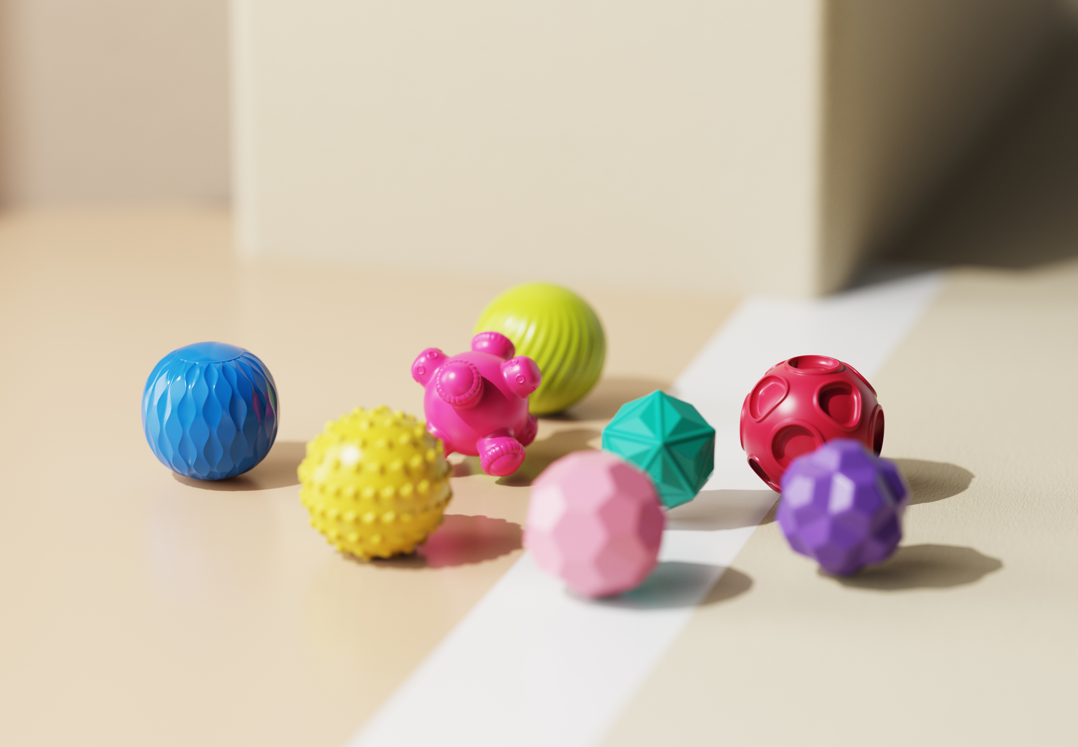 我设计的这套婴童戏水软胶球,采用丰富色彩搭配,既能吸引宝宝注意力,更能助力宝宝视觉认知发育;按压可喷水的设计,大幅提升产品可玩性,让宝宝在洗澡时尽情互动,轻松爱上洗澡。同时,搭配多样造型、细腻表面纹理及不同大小尺寸,贴合宝宝抓握习惯,助力训练宝宝触觉感知,兼顾趣味性与启蒙性。